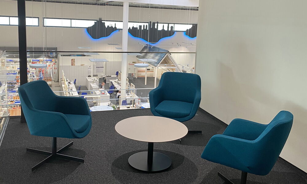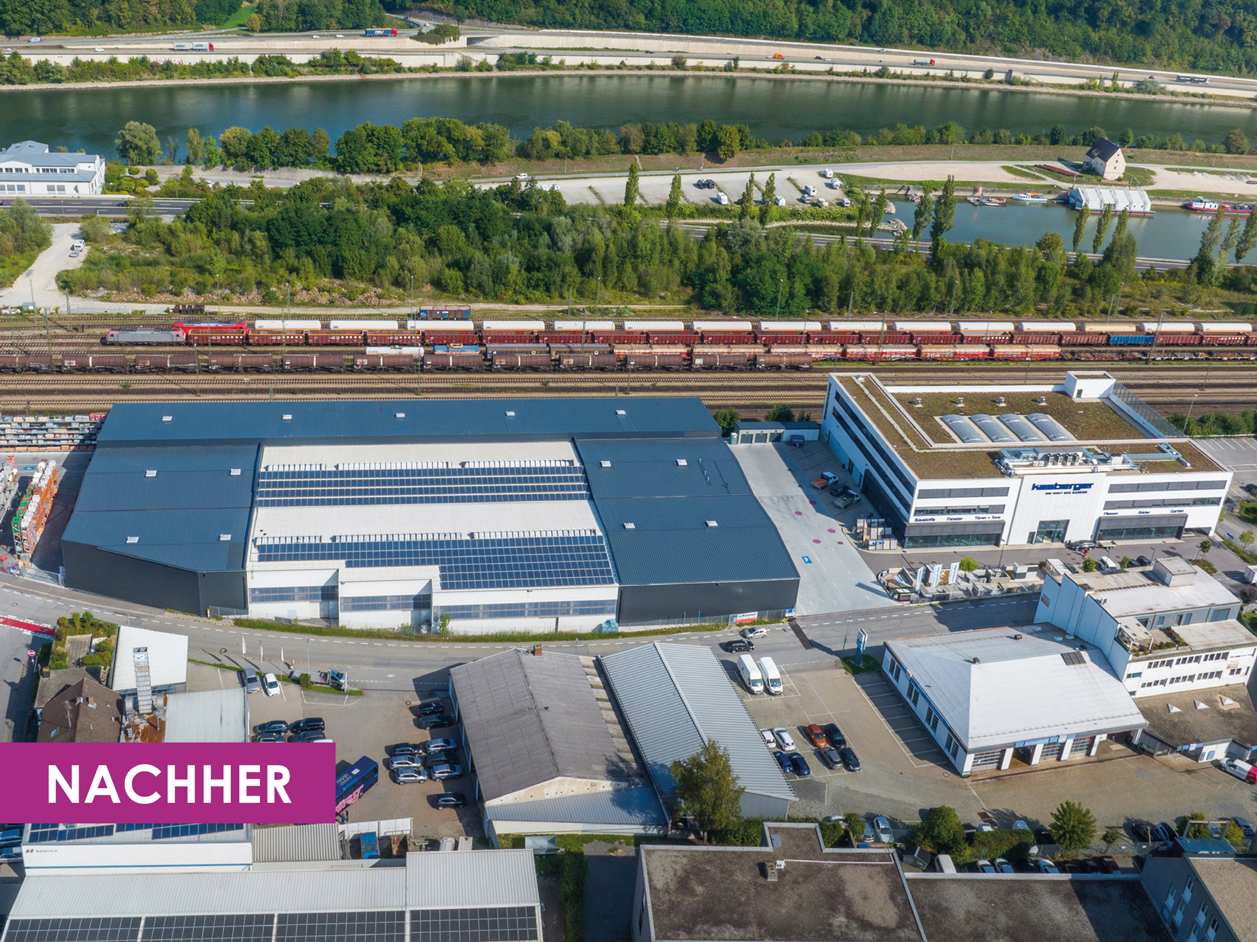 Neubau des Firmensitzes in Passau mit Verwaltung, Ausstellungshalle, Fachmarkt und Lagerhallen