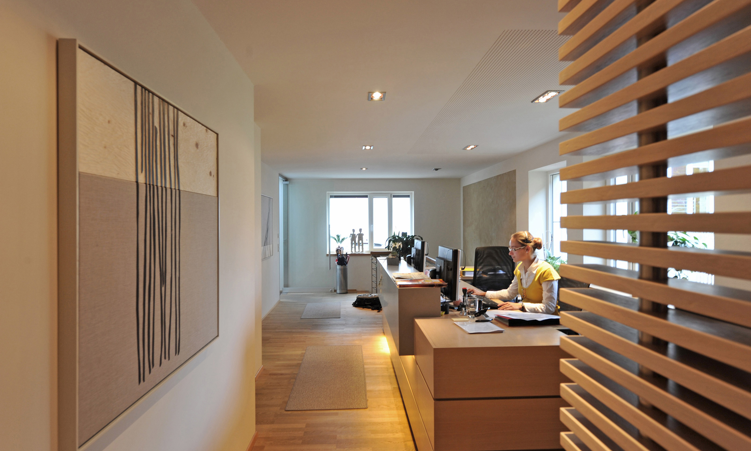 Der An- und Umbau erweitert die bestehenden Kanzlei um Büro und Besprechungsräume. Ein neues Gestaltungskonzept der Innenräume schafft moderne Arbeitsplätze und eine hohe Aufenthaltsqualität.